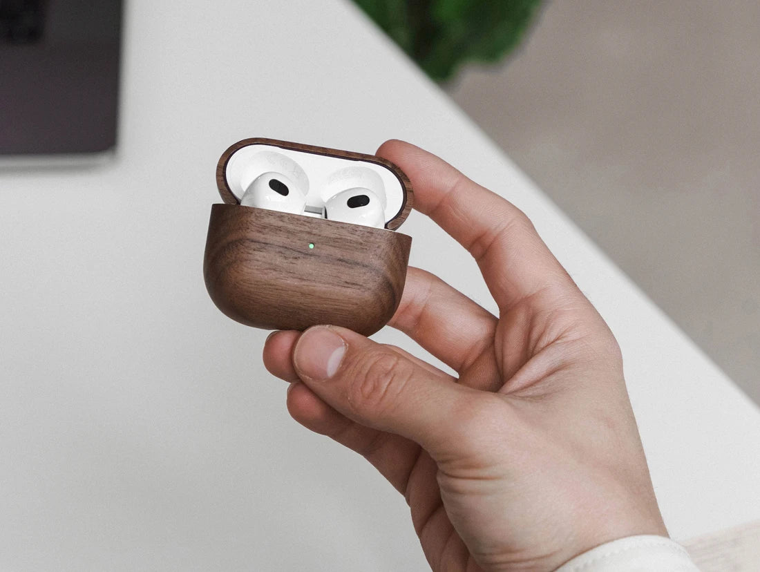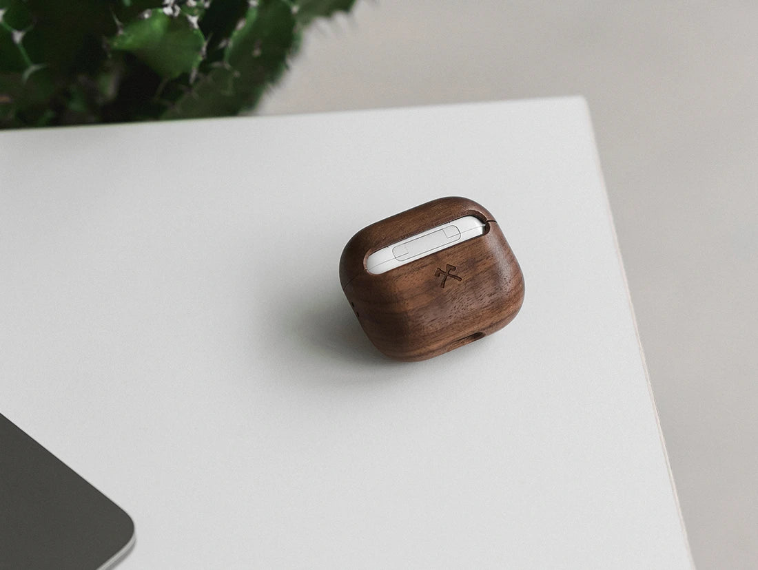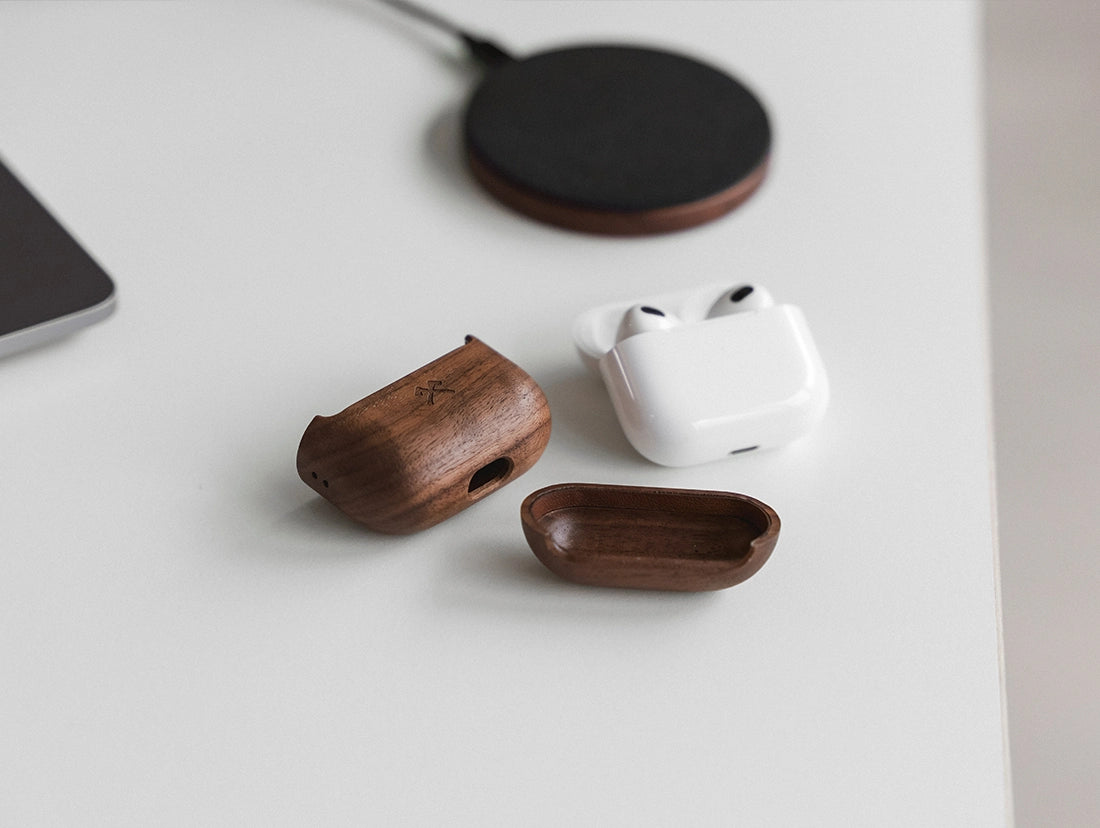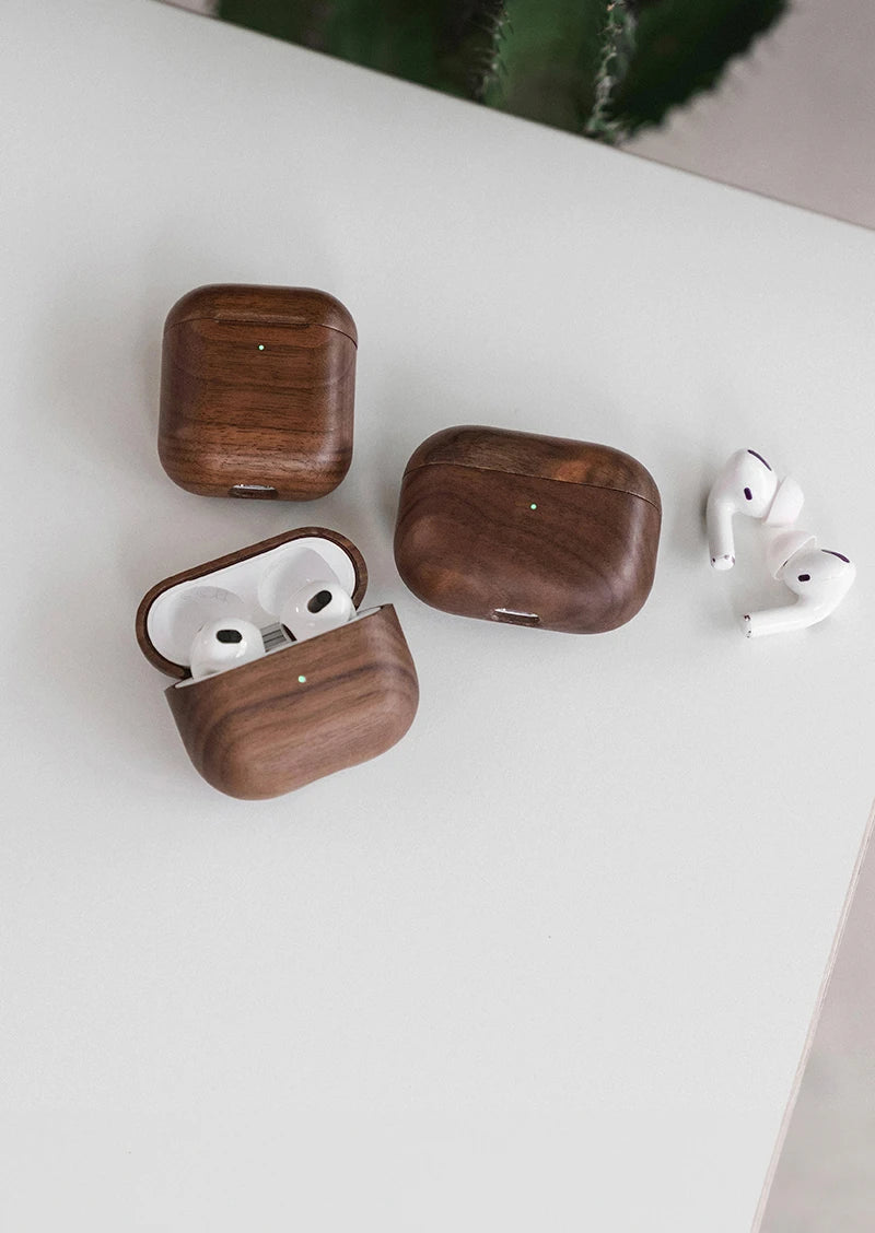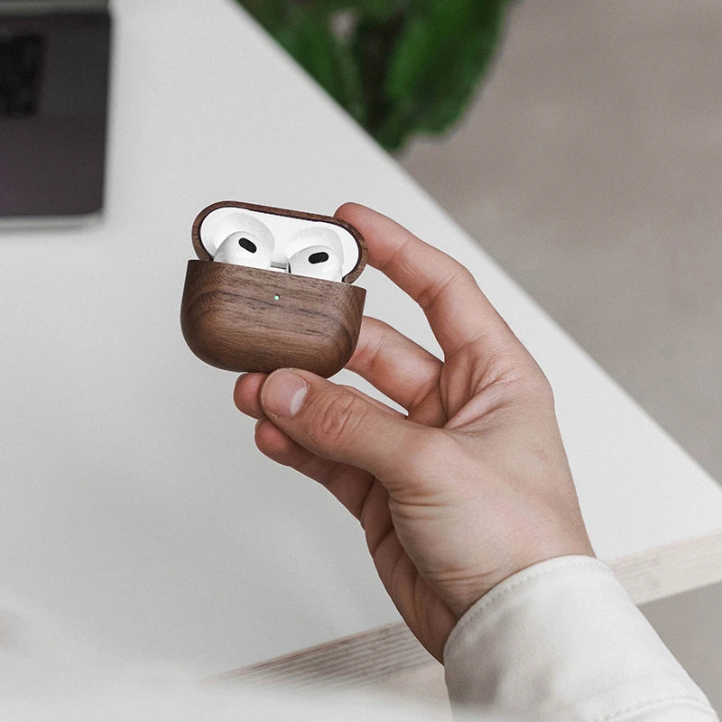 Notre nouvelle housse AirPods est le compagnon idéal pour les individualistes qui ont du style. Fabriqué à la main en bois de noyer de qualité supérieure, cet étui sublime tes AirPods et attire tous les regards !