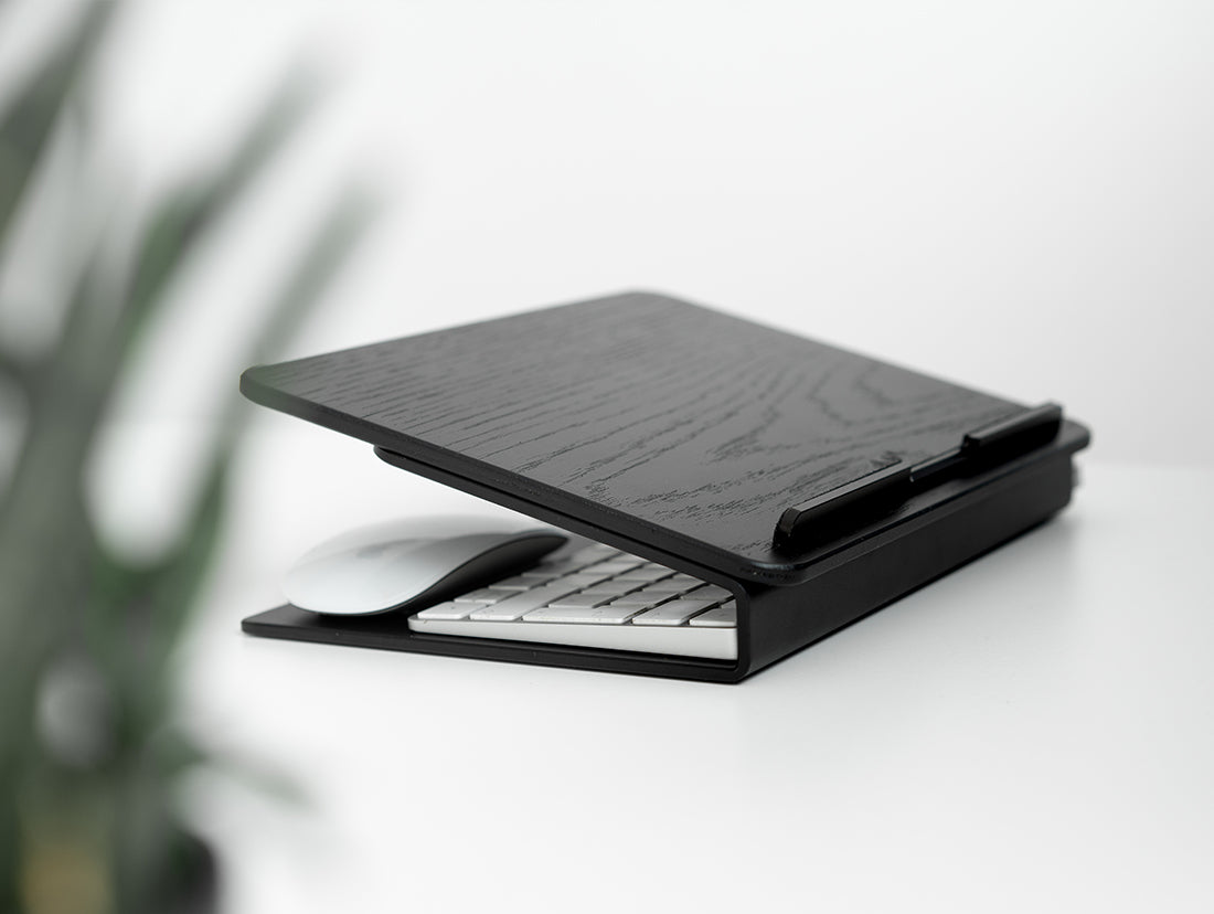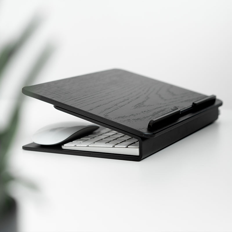 Gagne de la place en rangeant ton clavier, ta souris et autres sur la tablette arrière. Le feutre de haute qualité sur le support pratique permet une ouverture confortable et protège des rayures !