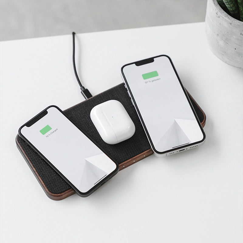Utilise une puissante puissance de charge de 30W pour charger rapidement trois appareils ! Avec la station de charge inductive, tu peux charger simultanément ton smartphone et tes AirPods. Le MultiPad supporte en outre le Fast Charging 15W !