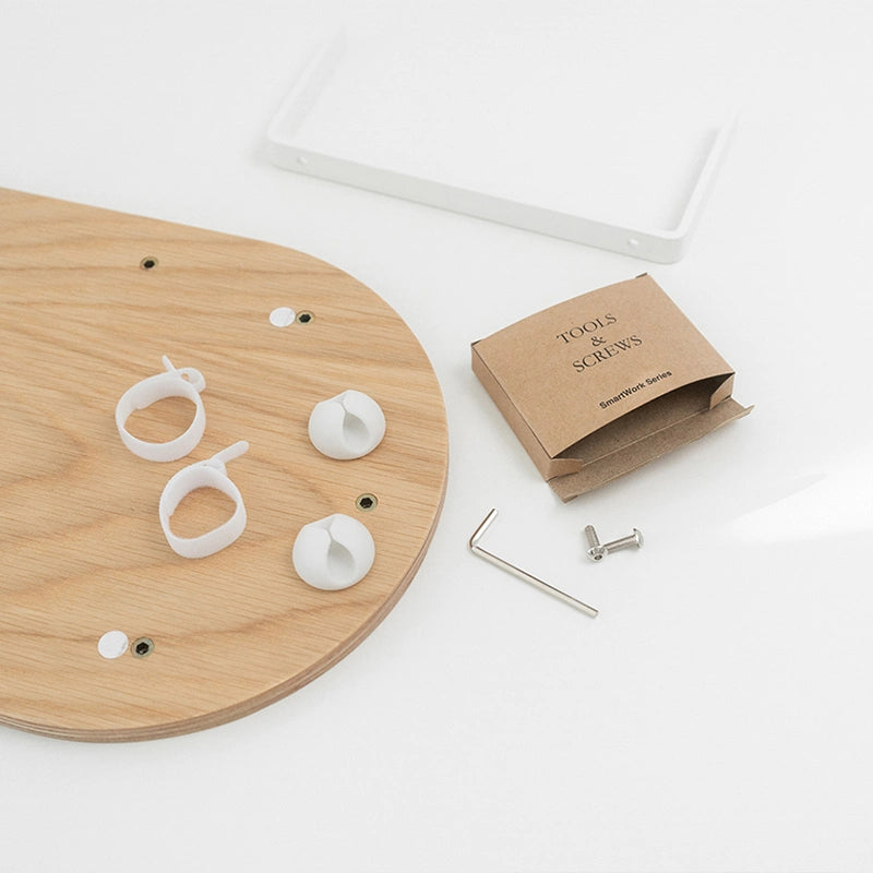 Tu peux facilement assembler ton support d'écran à l'aide des accessoires fournis. Les pieds en aluminium sont fixés à la planche à l'aide de vis et d'une clé Allen, ce qui permet de les retirer sans trop d'efforts. Tu trouveras également dans ton paquet un mode d'emploi qui t'aidera à le faire.