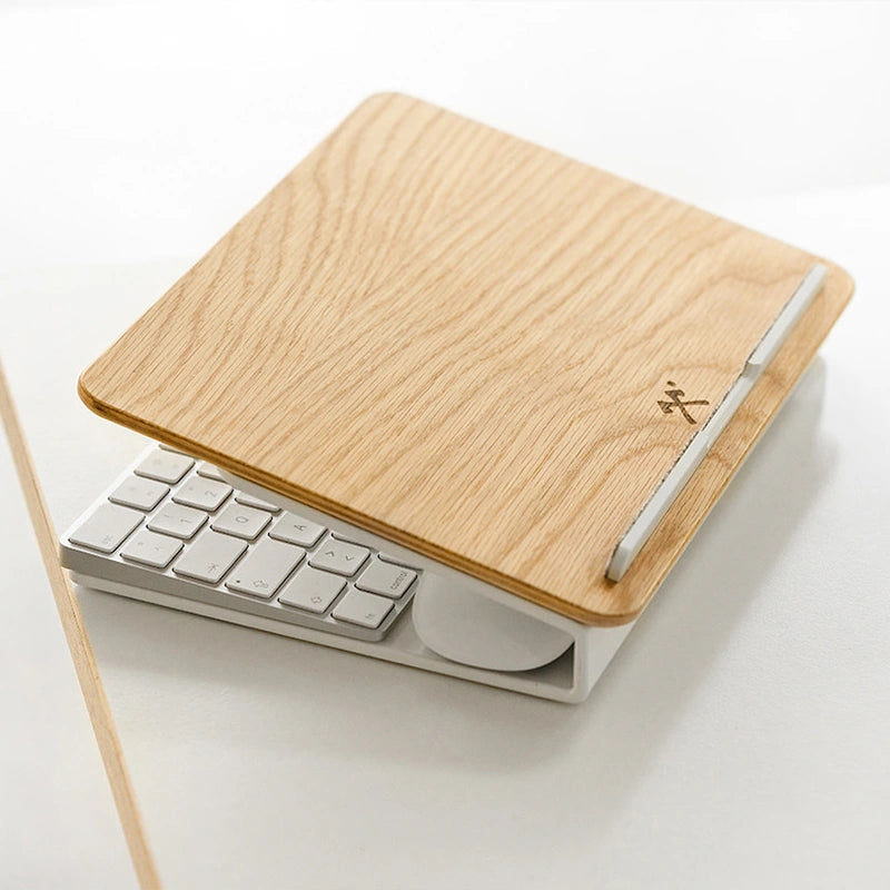 Gagne de la place en rangeant ton clavier, ta souris et autres sur la tablette arrière. Le feutre de haute qualité sur le support pratique permet une ouverture confortable et protège des rayures !