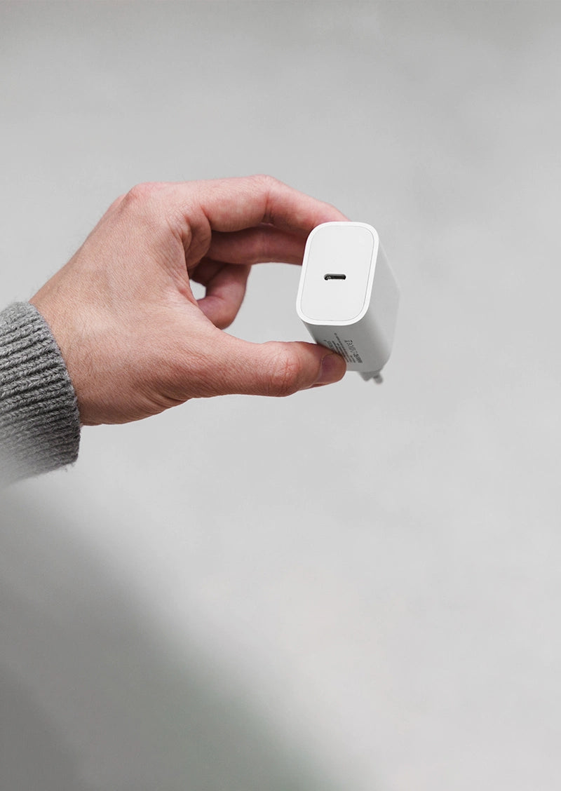 Grâce à la nouvelle norme Power Delivery avec puce intelligente, l'adaptateur d'alimentation USB-C 30W et le terminal communiquent entre eux afin de régler la puissance parfaite pour ton appareil. Cela garantit une charge stable et sûre !