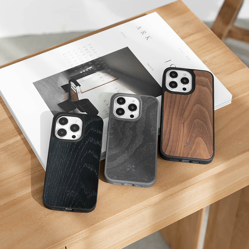 Ton Bumper Case n'est pas seulement disponible dans une noble optique de noyer, mais aussi avec un dos en véritable pierre ou en édition limitée Black Edition avec du chêne noir teinté de manière complexe ! Trouve ton préféré !