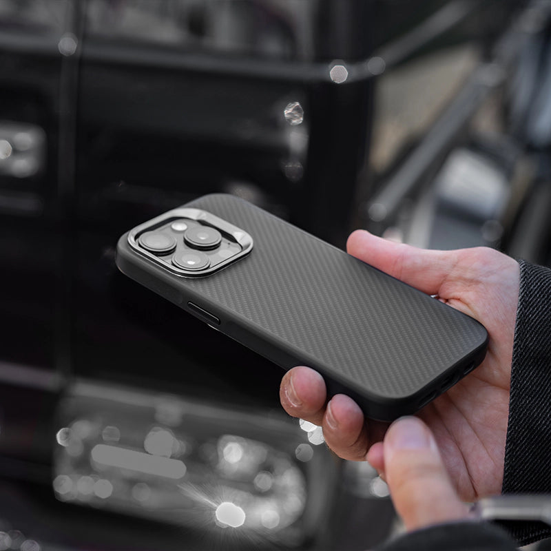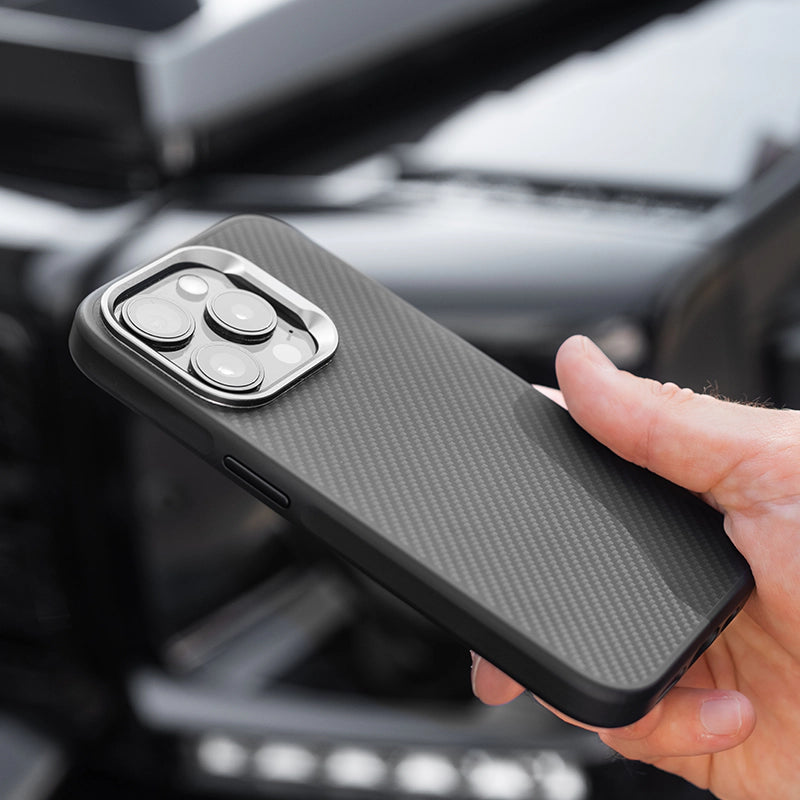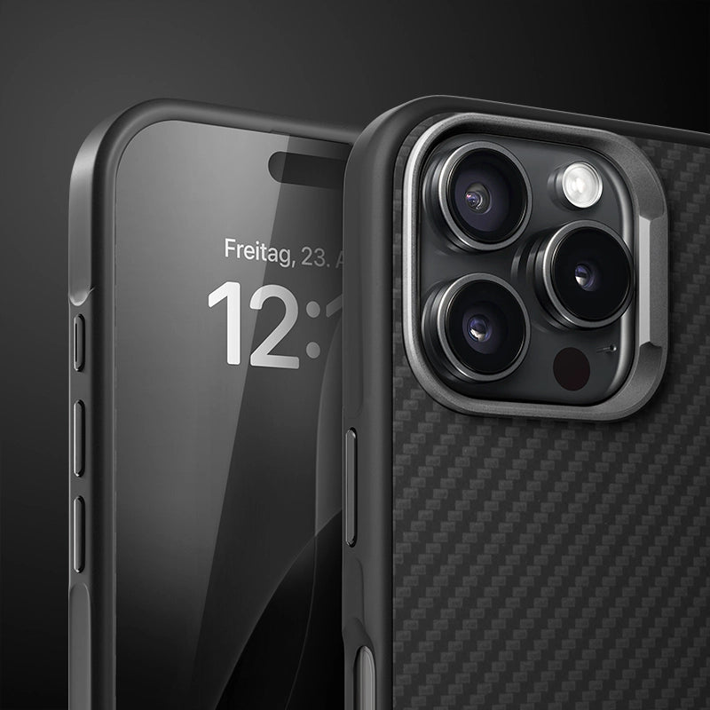 Avec ses éléments en aluminium de haute qualité, son profil aérodynamique et sa surface 3D veloutée, le Carbon Case convainc par son toucher et son confort d'utilisation optimaux. Les aimants officiels N52 ultra puissants garantissent une compatibilité totale avec Apple MagSafe©.