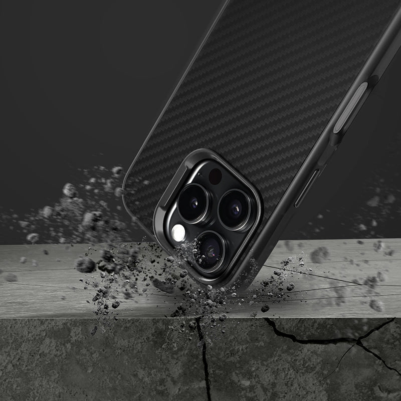 Découvre la protection professionnelle grâce à des matériaux performants renforcés et à une construction à 360 degrés ! La très efficace La construction de la coque a été conçue pour absorber et répartir l'énergie. Certifiée selon la norme MIL-STD-810, la coque offre une protection déroulante jusqu'à 2,4 mètres et donc 5x plus de protection qu'une coque économique en plastique dur. Une protection maximale pour un poids minimal! C'est notre Carbon Case!