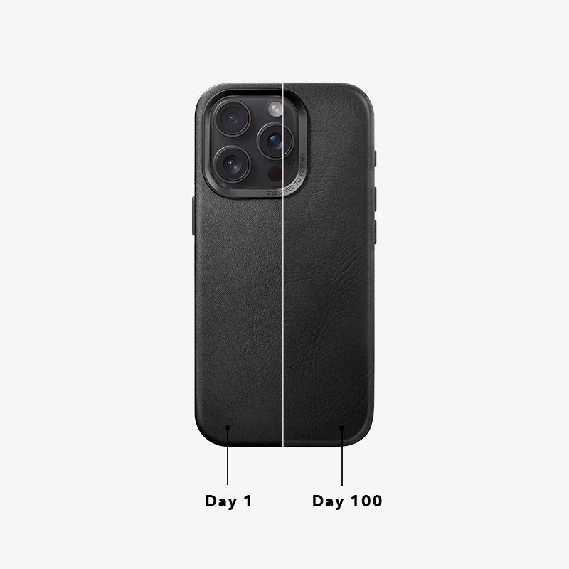 Comme le cuir véritable, notre matériau s'assombrit avec le temps et développe une patine qui lui confère un aspect et une sensation uniques ! L'aluminium brossé de notre étui en cuir peut présenter de légères traces d'usure après un certain temps d'utilisation. Il est donc normal que la couleur de base de l'aluminium soit visible.