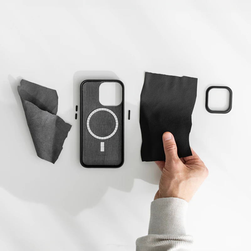 Notre matière végétale est naturellement imperméable ! Si elle est mouillée, il suffit de la laisser sécher et de continuer à l'utiliser normalement. La saleté et les taches peuvent être essuyées avec un chiffon humide. Un traitement ou un entretien particulier de ton produit Woodcessories n'est pas nécessaire.