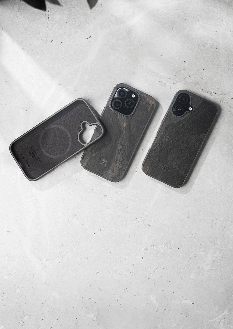 Tous les étuis et produits Woodcessories sont issus de la nature ! Nous utilisons du bois véritable, qui provient en grande partie d'Allemagne, d'Asie et des États-Unis. Tous les bois sont certifiés et proviennent de forêts gérées durablement. Nous utilisons également des pierres d'ardoise et de quartzite, qui se sont formées pendant 300 millions d'années à partir de dépôts d'argile granuleuse, de boue et de bois. Il en résulte des couleurs et des structures très particulières.