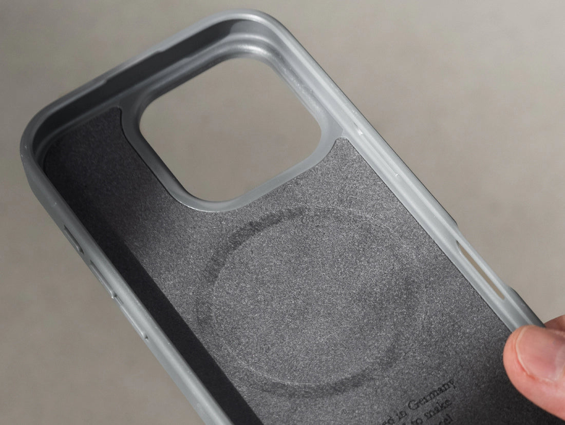 Veuillez toutefois noter que tous les produits magnétiques tiers ne sont pas réellement compatibles avec MagSafe. En effet, tous les aimants ne se valent pas. D'autres revendeurs et marques utilisent généralement des aimants insuffisamment testés ou faibles, qui limitent la fonction MagSafe ou entrent en conflit avec le logiciel de ton iPhone Apple. Nous, en revanche, utilisons des aimants de haute qualité et testés. Au total, 40 disques magnétiques ultrafins et spécialement conçus sont intégrés dans notre étui. Ils promettent une fixation extra-forte et n'entravent pas en même temps le logiciel de ton iPhone. Nos aimants ont une force de traction magnétique de 1623GS, sont revêtus et résistent à une chaleur de 120 degrés Celsius. Une qualité que l'on peut littéralement ressentir !