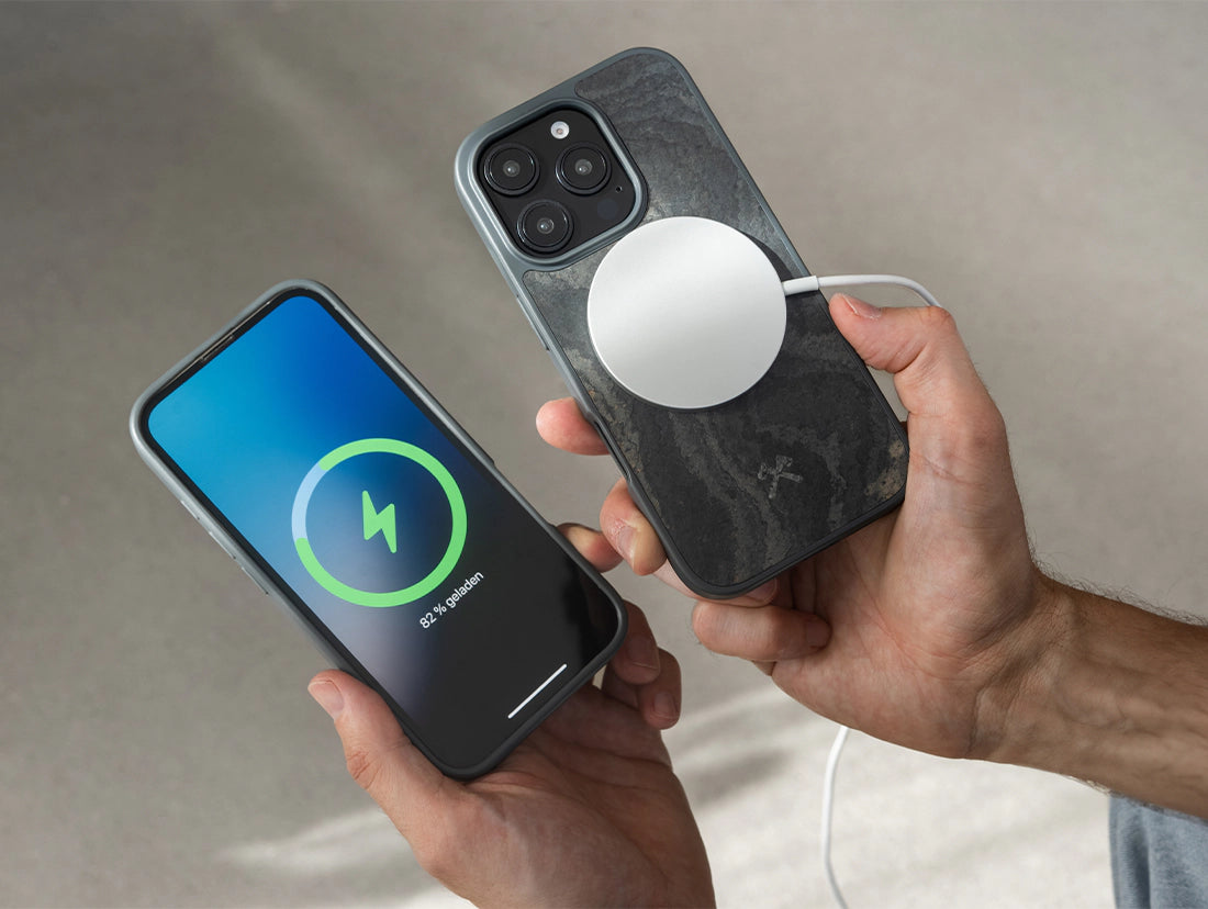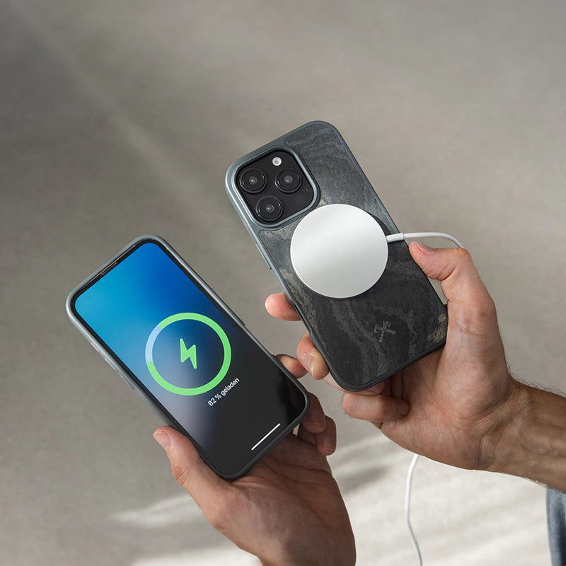Oui ! tous les modèles d'iPhone disposent d'une fonction de chargement sans fil intégrée, ce qui rend le chargement de l'appareil simple et intuitif. Grâce à leur couche d'une finesse millimétrique, les étuis en bois et en pierre peuvent également être utilisés pour la recharge par induction (technologie Qi) et sont compatibles avec presque toutes les stations de recharge sans fil.