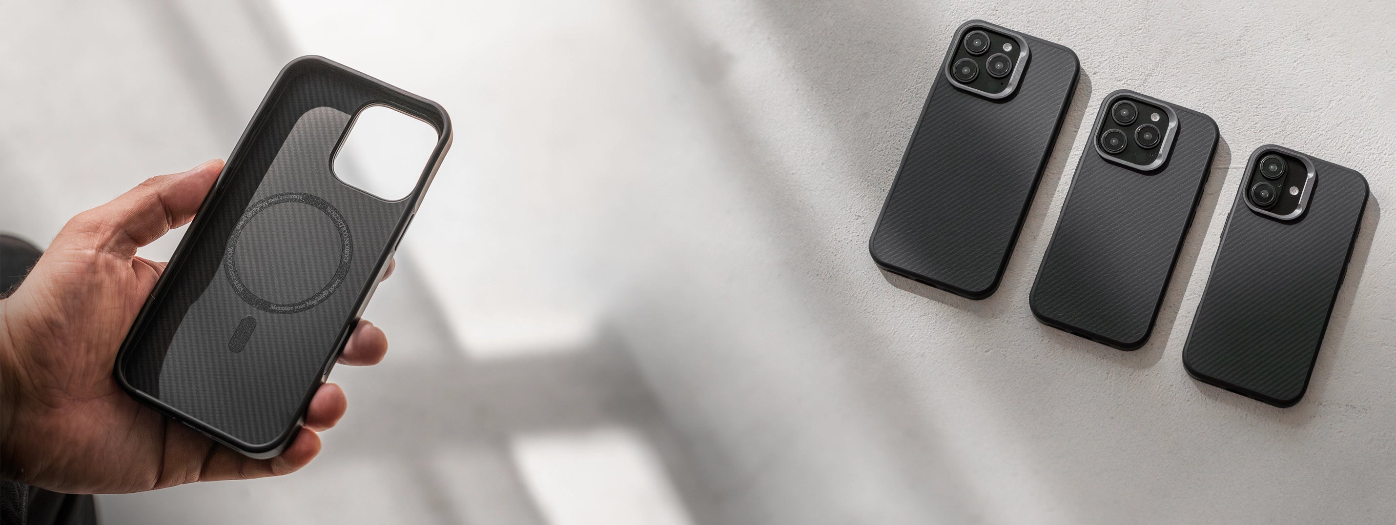 Avec ses éléments en aluminium de haute qualité, son profil aérodynamique et sa surface 3D veloutée, le Carbon Case convainc par son toucher et son confort d'utilisation optimaux. Les aimants officiels N52 ultra puissants garantissent une compatibilité totale avec Apple MagSafe©.