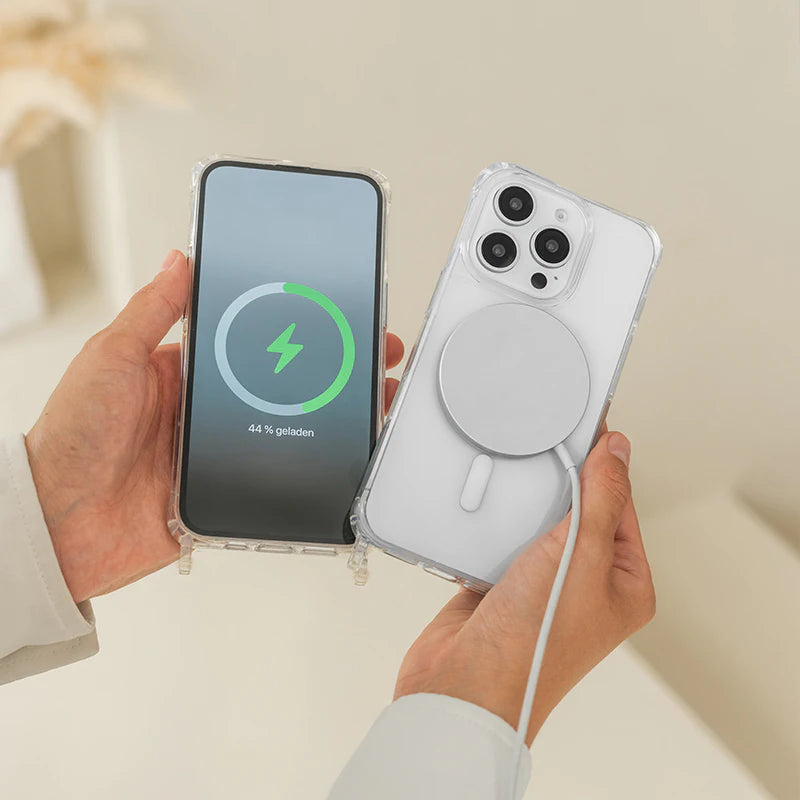 Notre Clear Case avec cordon universel pour ton iPhone 17 Pro Max! Grâce à des œillets presque invisibles, tu peux accrocher et décrocher sans problème les mousquetons dorés de ton cordon et les adapter à ta taille. La coque est fabriquée à partir de matériaux 100% recyclés et protège non seulement ton iPhone mais aussi l'environnement.
