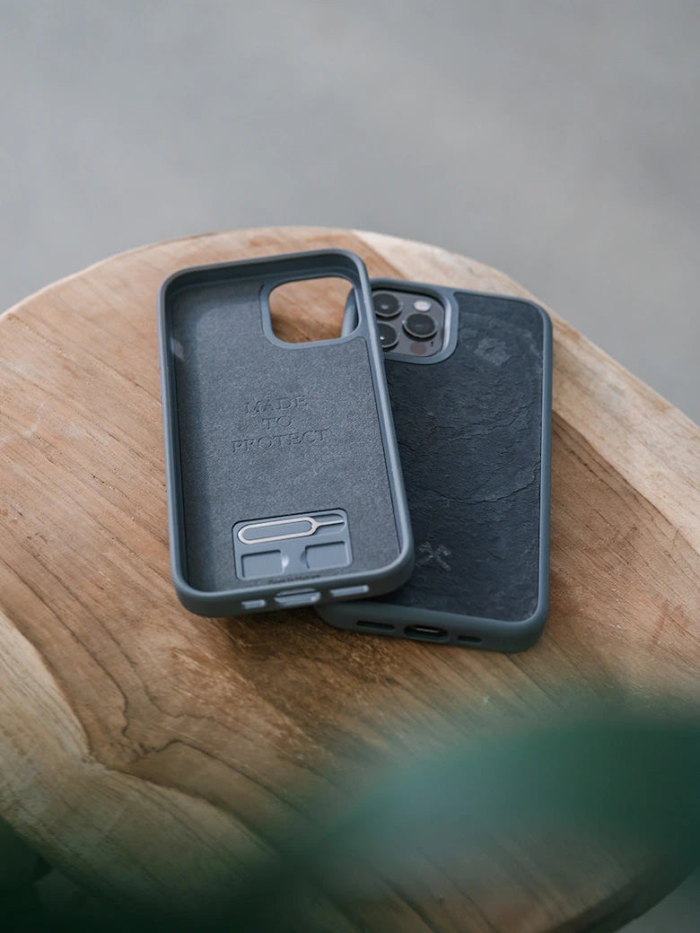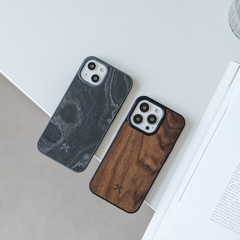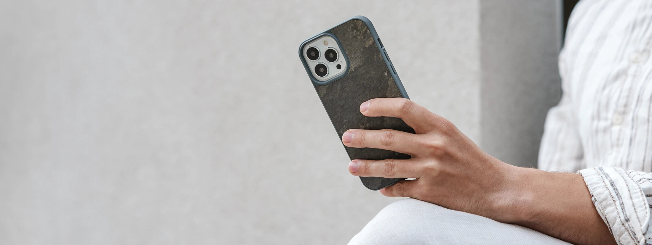 Tous les étuis et produits Woodcessories sont issus de la nature ! Nous utilisons du bois véritable, qui provient en grande partie d'Allemagne, d'Asie et des États-Unis. Tous les bois sont certifiés et proviennent de forêts gérées durablement. Nous utilisons également des pierres d'ardoise et de quartzite, qui se sont formées pendant 300 millions d'années à partir de dépôts d'argile granuleuse, de boue et de bois. Il en résulte des couleurs et des structures très particulières.