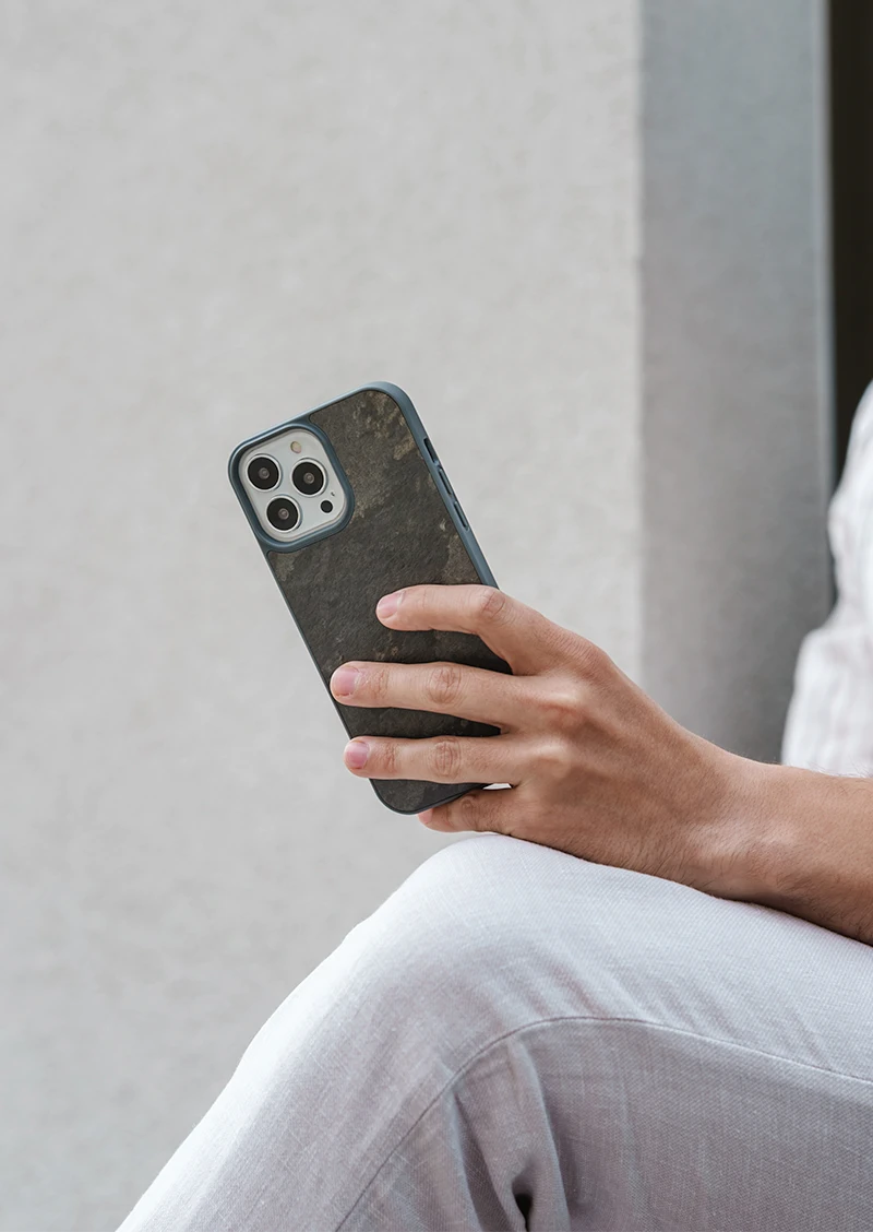 La coque iPhone SE 3 / SE 2 unique en son genre, fabriquée en pierre véritable sélectionnée à la main et en silicone recyclé, protège ton iPhone contre les chutes jusqu'à 2 m de hauteur ! Ta coque pour iPhone en pierre est un véritable morceau de nature, avec des veines et des motifs personnalisés.