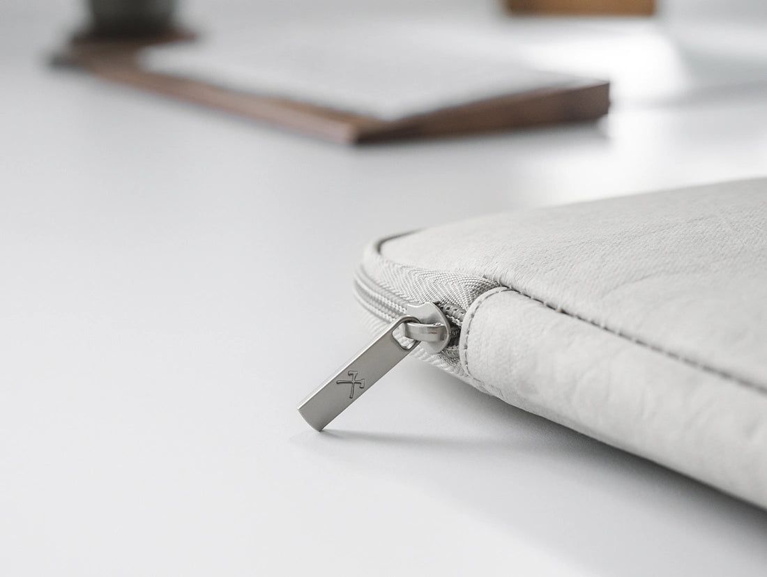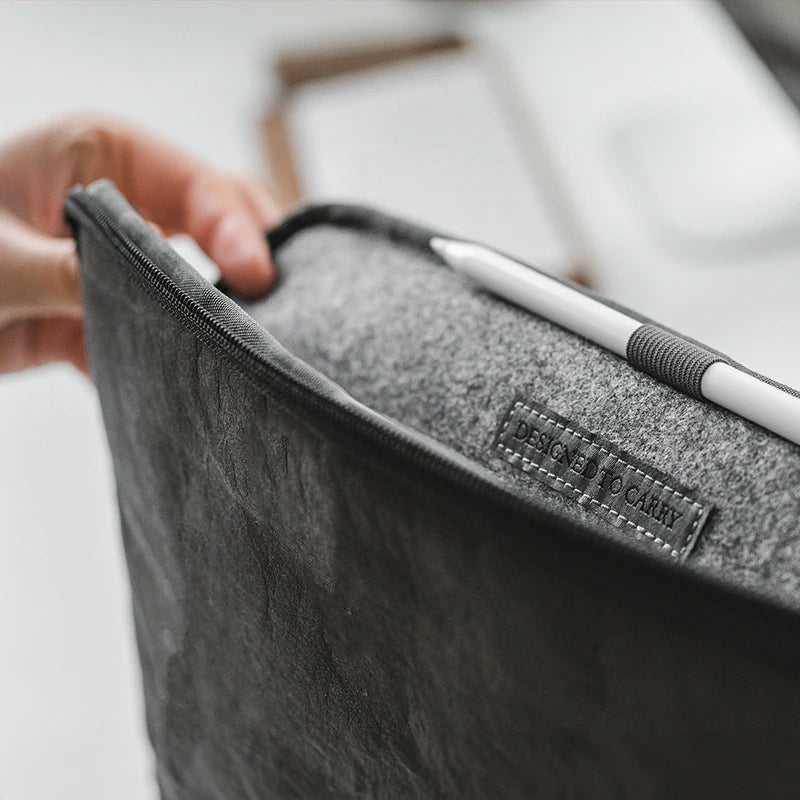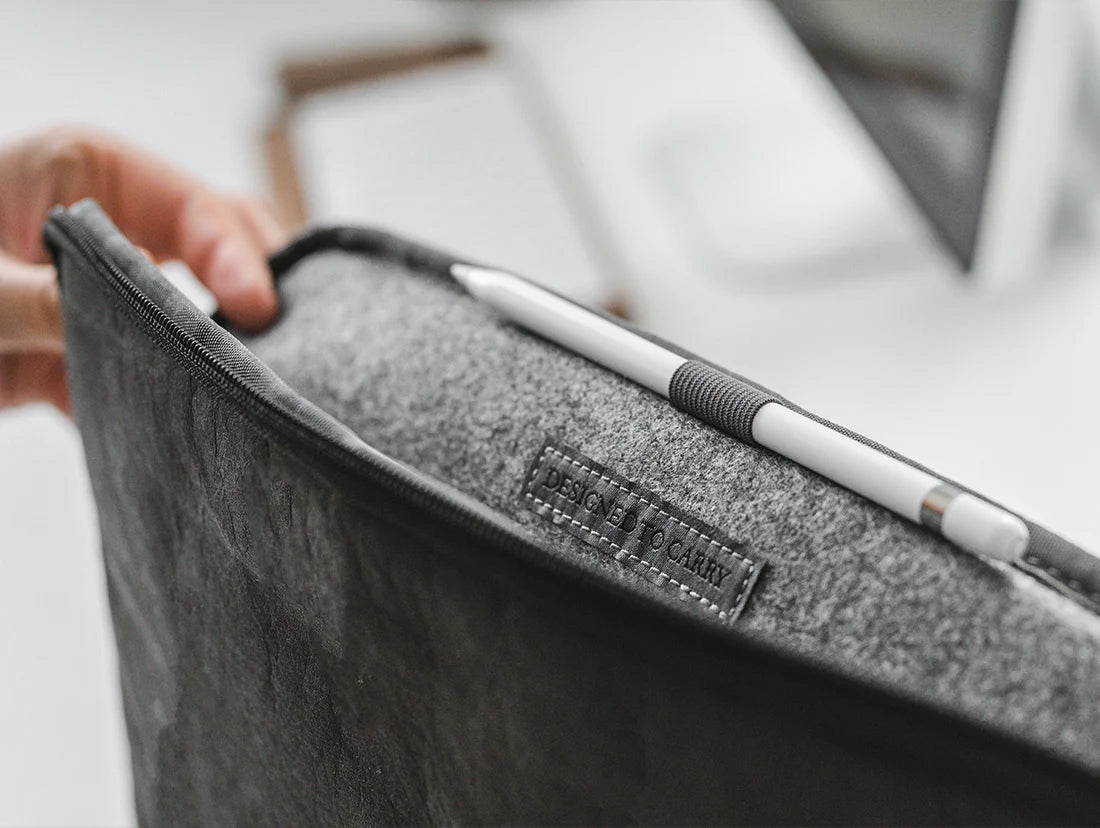 Le tissu en feutre durable fabriqué à partir de bouteilles en PET recyclées protège ton MacBook en douceur contre les rayures & réduit au passage la production de déchets plastiques et de microplastiques !