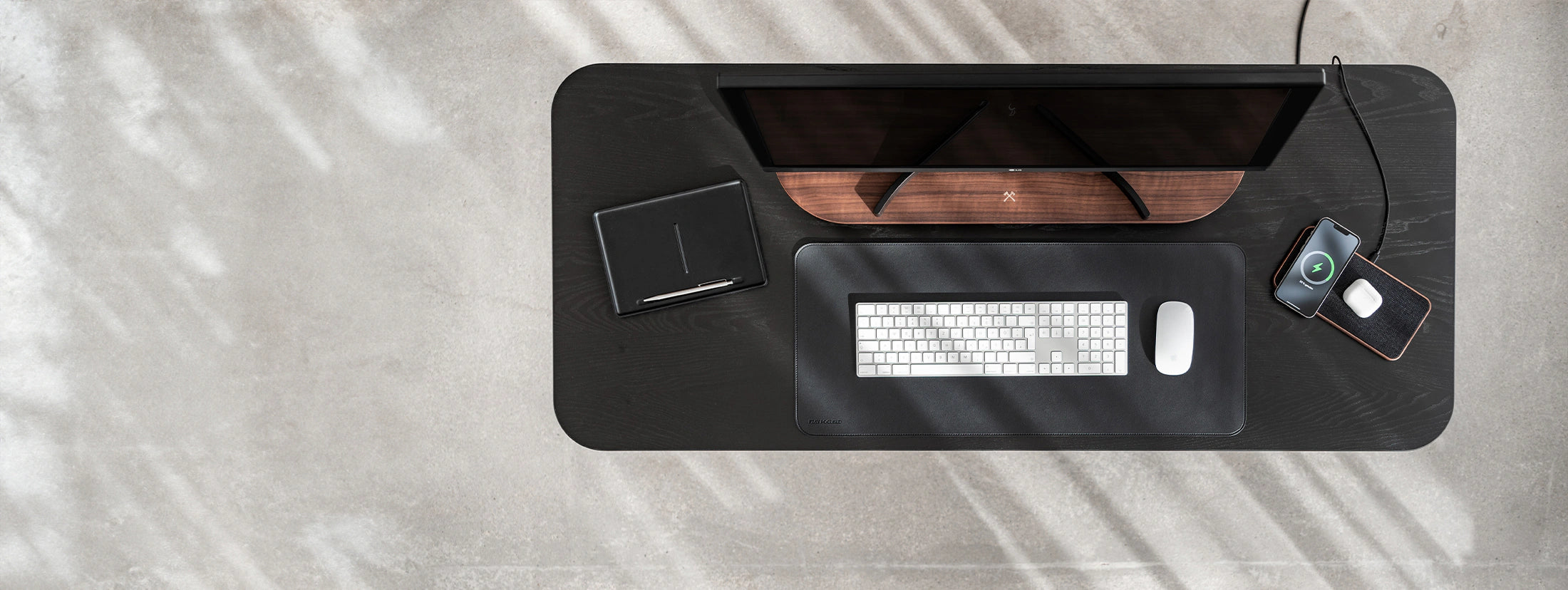 Tu peux choisir entre trois styles uniques, adaptés à ton intérieur et à ton bureau : Un bois de noyer noble, un design en chêne clair ou un look noir classique. Crée une atmosphère de travail parfaite et choisis ton préféré.